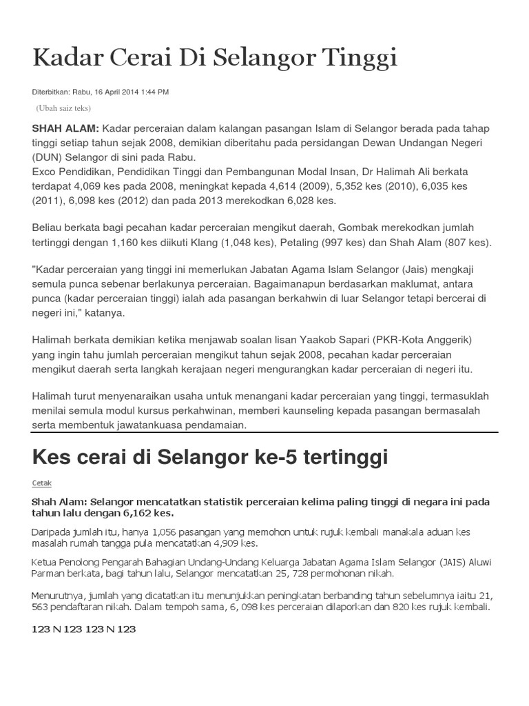 Kadar Perceraian Di Malaysia - Bertujuan meningkatkan mutu pendidikan di malaysia, pelbagai usaha telah dilakukan oleh kerajaan dengan memperkenalkan pelbagai dasar pendidikan.. Ibu pejabat lembaga hasil dalam negeri malaysia, menara hasil, persiaran rimba permai, cyber 8, 63000 cyberjaya selangor. Bertujuan meningkatkan mutu pendidikan di malaysia, pelbagai usaha telah dilakukan oleh kerajaan dengan memperkenalkan pelbagai dasar pendidikan. Akibat pengedaran dadah oleh mereka,10 peratus daripada 11 juta belia di malaysia dikesan terlibat dengan dadah pada tahun 2006 yang lalu. Ia bermaksud segala harta benda kita, 2.5% dari harta kita itu adalah bukan hak kita tetapi hak golongan 8 asnaf yang layak menerima zakat daripada kita. Kadar zakat harta ialah 2.5% dari jumlah harta.